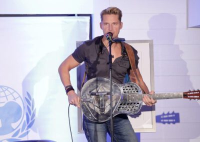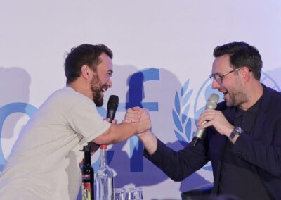 Ein weiteres Highlight war das Konzert am 13. Mai 2025 um 20 Uhr in der Trinkkurhalle. Noah Fischer, unterstützt von seiner Klarinette, begeisterte das Publikum und beendete den Abend mit Udo Lindenbergs „Komet“. Noah ist seit vielen Jahren ein treuer Begleiter des UNICEF Talks und spielt im Panik-Orchester von Udo Lindenberg.