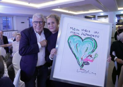 Ein ganz besonderes Highlight der Veranstaltung war die Versteigerung des Bildes von Udo Lindenberg – ein UNICAT, das für stolze 20.000 € den Besitzer wechselte. Es berührte mich zutiefst zu sehen, wie großzügig unsere Gäste waren. Wolfgang Kubicki sprang spontan ein und spendete 1.000 €, was die Menge sichtlich begeisterte. Zudem wurde ein Gutschein für eine Übernachtung im Hotel Fuchsbau sowie zwei Mal zwei Karten für „Stars am Strand“ und ein Special-Ticket für die Karl May Spiele 2026 in Bad Segeberg versteigert.